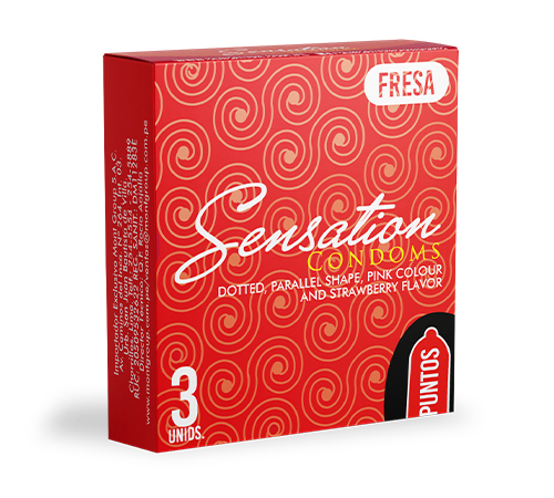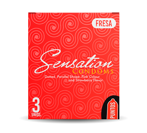 Condón masculino, punteado, forma paralela, color rosado y sabor a fresa usado como un método anticonceptivo de barrera o para prevenir las enfermedades de transmisión sexual.