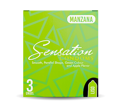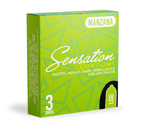 Condón masculino, liso, forma paralela, color verde y sabor a manzana usado como un método anticonceptivo de barrera o para prevenir las enfermedades de transmisión sexual.